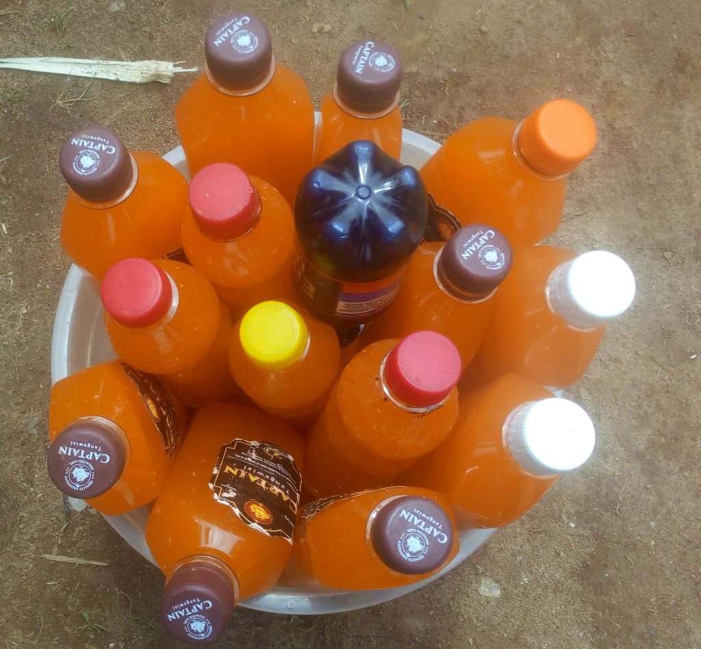 Des bouteilles réutiliser pour la vente des jus de fruit © Photo Fabrice Lyriste de Radio Upendo Kivu